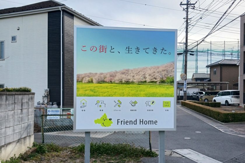 以前から何度か自立看板やパネル看板などを製作させていただいた経緯があり、今回、企業のブランドイメージを地域に浸透させるためのブランディング看板を設置したいとのご依頼があり、複数箇所に自社のアパート様の敷地に建てさせていただきました。