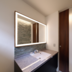 鏡照明輝は電源別置型で厚み『35mm』が基本サイズ!!LED照明が入った状態で35mmになっており、壁に取り付けても違和感はありません。また、既存の枠に合わせたいといった要望にも対応いたします。※既存の枠に取付可能かは要確認