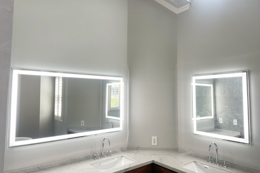 福島県 一般住宅様の洗面室に鏡照明輝フレーム無しタイプを納入いたしました。